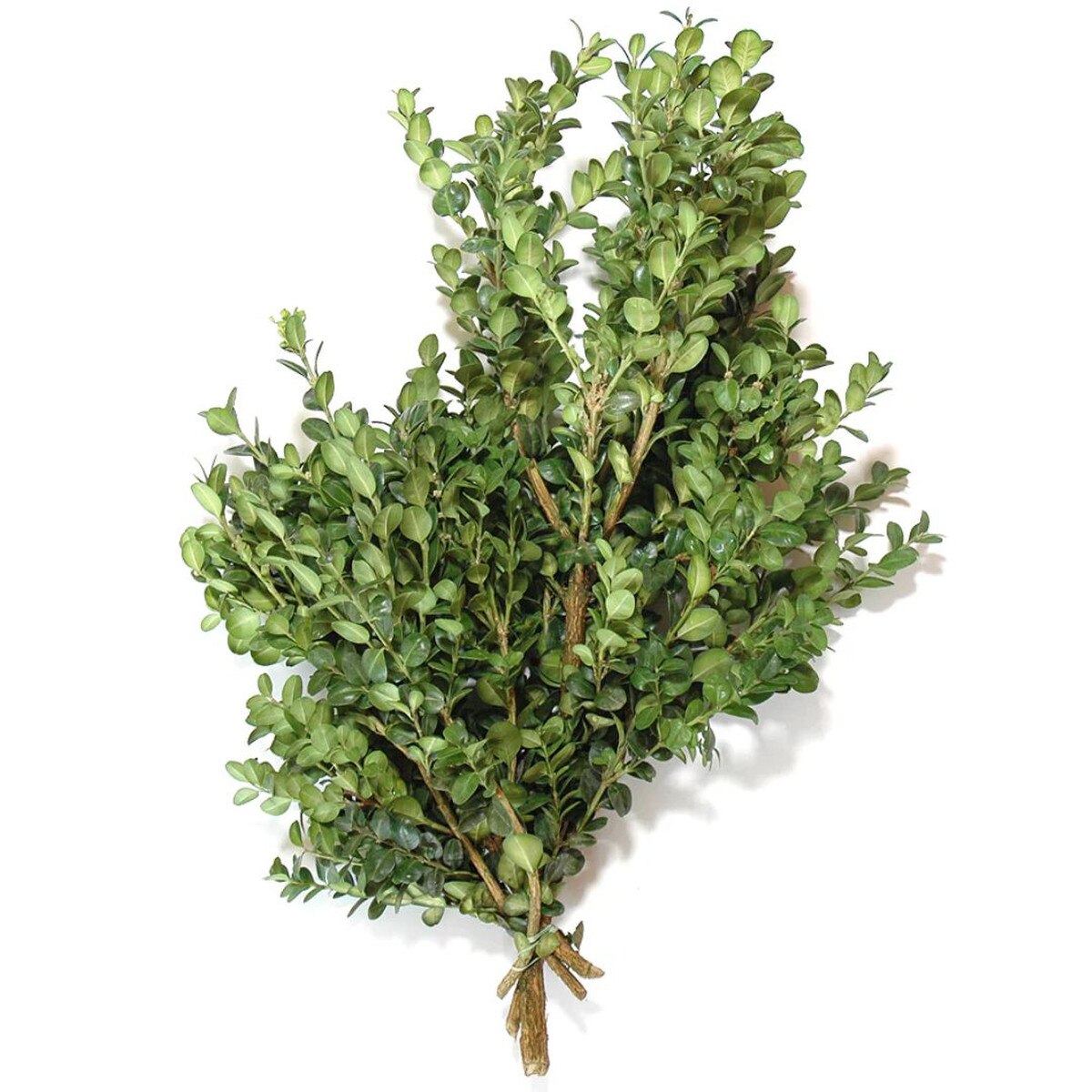 A lush bundle of premium fresh boxwood greens, known for its dense, variegated leaves that resemble boxwood. Its strong, upright stems and exceptional longevity make it a top choice for outdoor winter planters and seasonal décor.